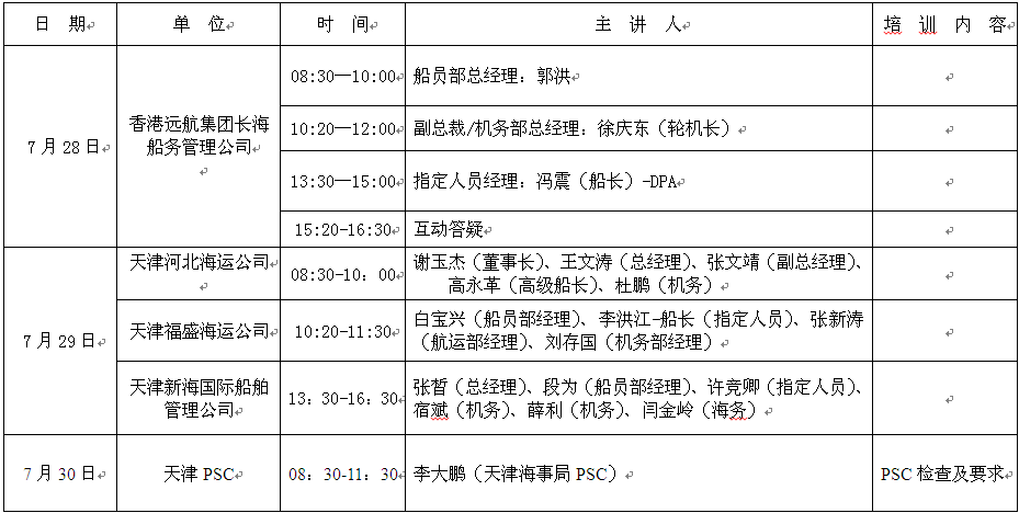 2016年7月28日7:30所有船員在公司集中然后乘大客車前往天津海運職業(yè)學院,乘車時間大約1個小時。7月30日中午飯后13:00所有船員返回公司。