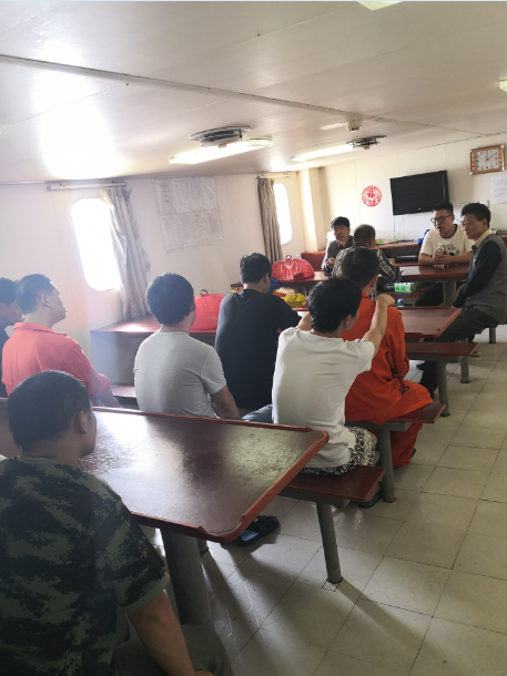 楊總、高維主管及船東何經(jīng)理一行人乘坐小船,于早上10點(diǎn)到達(dá)“港洋”輪所在的黃岐外錨地,走過(guò)舷梯,進(jìn)入船艙,來(lái)到船長(zhǎng)辦公室。楊總通過(guò)座談的方式向陳增寶船長(zhǎng)了解“港洋”輪近期的船舶運(yùn)營(yíng)情況及船員的工作和生活情況。隨后楊總結(jié)合公司規(guī)章制度及近期的安全生產(chǎn)情況,就如何加強(qiáng)與船東配合及溝通,對(duì)全體船員進(jìn)行傳達(dá)和溝通,同時(shí)著重說(shuō)明了接船后的一些具體的要求和工資待遇,取得了不錯(cuò)的效果。