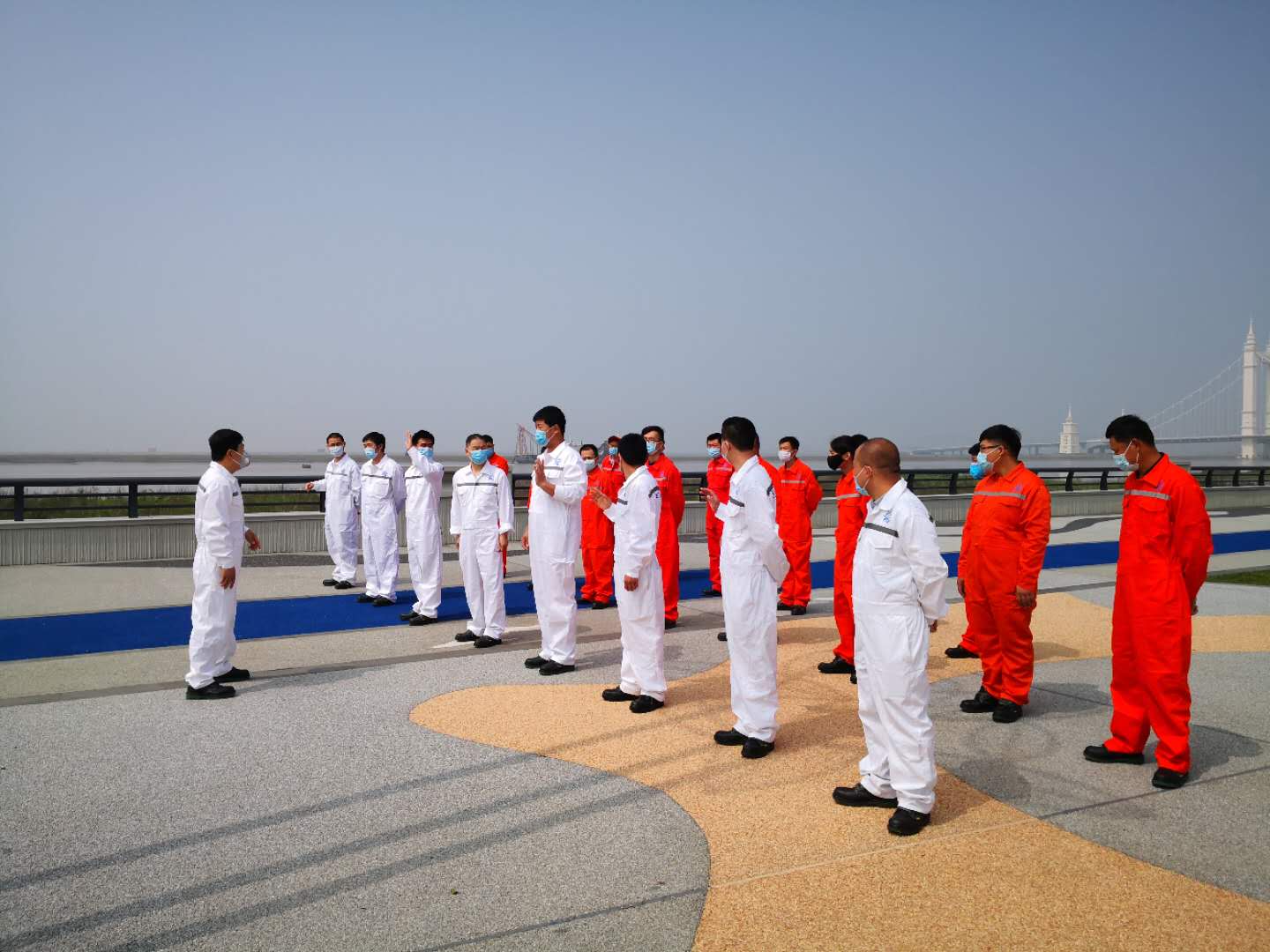 5月10日,23名換班船員在船員部負責人的帶領下乘坐高鐵抵達寧波,并委托代理安排包車接站,于當晚抵達舟山港。疫情期間為了避免交叉感染,5月11日上午,公司充分利用待命時機,組織船員在海邊露天廣場做上船前的強化培訓,船員弟兄們專心學習,認真聆聽,熱烈討論,培訓效果良好,大大提高了船員的安全意識和服從意識。隨后公司將嚴格按照疫情防控要求,聯(lián)系安排車輛和觀察隔離點等后續(xù)事宜,保證完成船員交接班任務和“海麗”輪的順利離港工作,真正實現(xiàn)全船順利換班。