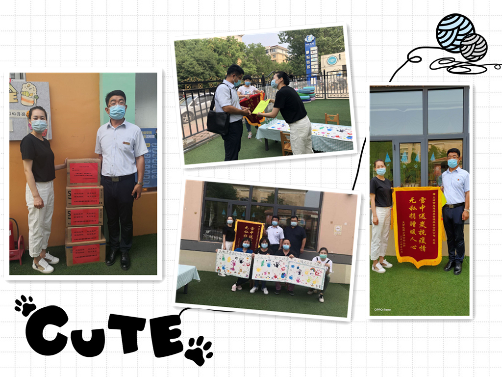 活動(dòng)中公司為復(fù)課的幼兒園捐贈(zèng)了消毒洗手液、酒精等防疫物品,孩子們將親手繪制的創(chuàng)意手繪畫(huà)送給企業(yè),并送上了感謝信和錦旗。