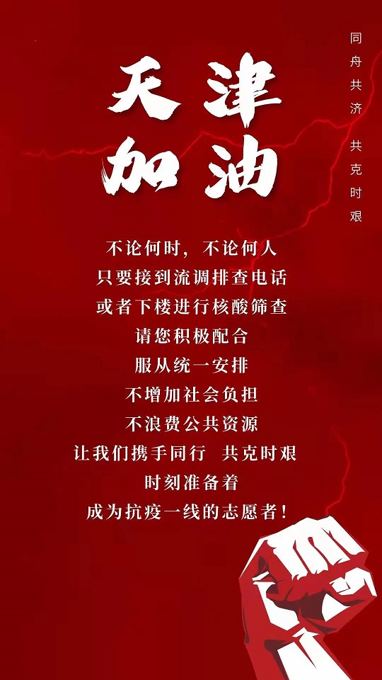 1月8日,“奧密克戎”突襲津城,打破了天津人民的生活,在市委市政府的堅(jiān)強(qiáng)領(lǐng)導(dǎo)和快速反應(yīng)下,全市人民積極響應(yīng)主動(dòng)參加與疫情的戰(zhàn)斗。