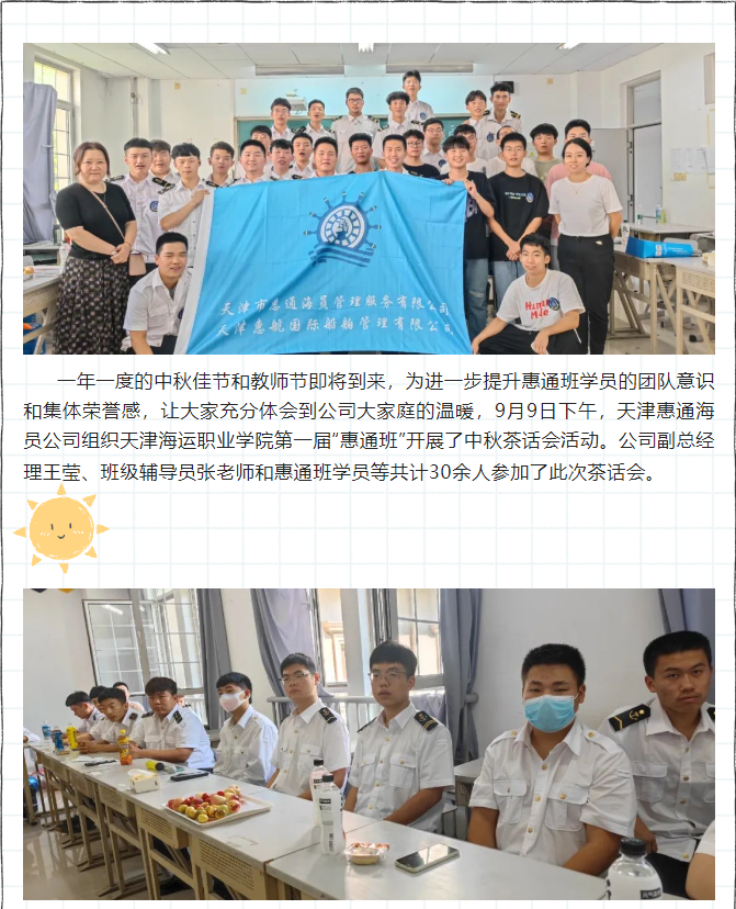 天津海運(yùn)職業(yè)學(xué)院“惠通班”中秋聯(lián)誼暨教師節(jié)慶?;顒?dòng)紀(jì)實(shí) 時(shí)間:2022-09-13 點(diǎn)擊:1775次 上一篇:公司開展“喜迎二十大,共慶祖國(guó)73周年華誕”主題活動(dòng) 下一篇:天津惠航國(guó)際船舶管理有限公司順利通過天津海事局初次審核