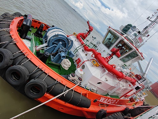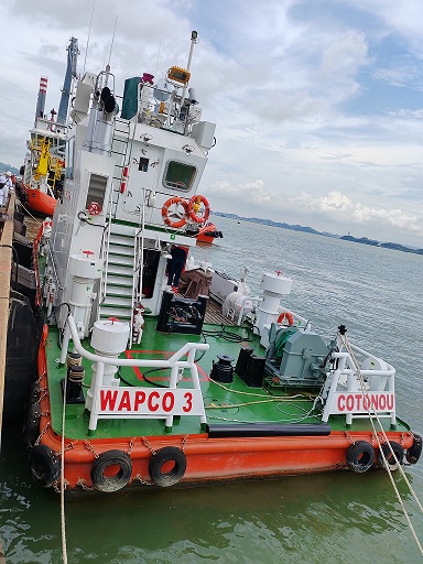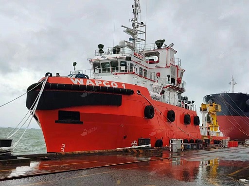 該三艘工作船是WAPCO公司專門為尼貝項(xiàng)目海上作業(yè)和海上設(shè)施運(yùn)行維護(hù)而量身打造,全部入級法國船級社(BV),這三艘船除具備為油輪頂推拖拽功能外,還兼?zhèn)湎?、起拋錨、海上溢油圍控回收、海上應(yīng)急救援、物資供應(yīng)、海洋工程支持作業(yè)等綜合性船舶服務(wù)能力,是保障尼貝管道項(xiàng)目海上作業(yè)和海上設(shè)施安全平穩(wěn)運(yùn)行、實(shí)現(xiàn)原油裝船作業(yè)的關(guān)鍵設(shè)備。
