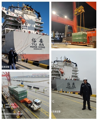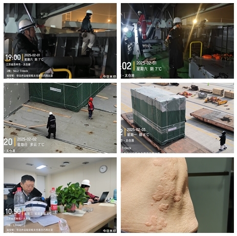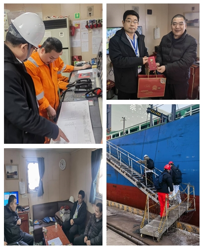2025年2月2日大年初五,由公司負(fù)責(zé)派員的“禾盛順99輪”在曹妃甸港裝貨期間進(jìn)行換班工作,副總經(jīng)理朱有順、船員部副經(jīng)理郭磊和換班船員一行五人奔赴曹妃甸登船。
