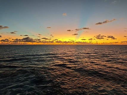 站在機(jī)艙頂層的通風(fēng)口遠(yuǎn)眺,夕陽(yáng)將海面染成金箔。耳邊依然響著永不停歇的機(jī)械心跳,但那些曾經(jīng)讓我恐懼的噪音,此刻卻像一首壯麗的交響樂(lè)。我知道,在這片被鋼鐵與油污包裹的天地里,我的航海人生正悄然啟航······