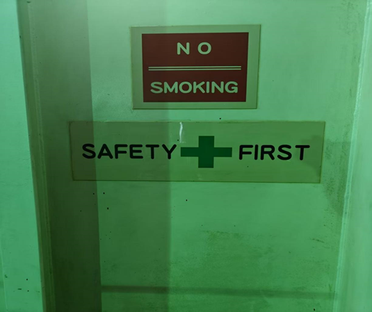 而在日常工作中安全更是從處處小事和細(xì)節(jié)中體現(xiàn)。依稀記得,在我剛上船的時(shí)候,由于是在船廠登船,機(jī)艙四處都充滿著船廠的工人,敲擊聲、切割聲此起彼伏。一個(gè)平靜的午后,我休息過(guò)后離開房間通往機(jī)艙上班,遠(yuǎn)遠(yuǎn)望去通往機(jī)艙那陡峭的樓梯,讓我這初入職場(chǎng)的菜鳥不由得心生恐懼,每次下樓梯時(shí)我的雙手都會(huì)緊緊地握住樓梯扶手,但就是這么一個(gè)簡(jiǎn)單的動(dòng)作也發(fā)生了一次“安全事故”。我在下樓梯的過(guò)程中,樓梯扶手焊接處不知何時(shí)焊口斷裂,鋒利的扶手?jǐn)嗔烟幩查g刺入我的手指,而劇烈的疼痛讓我瞬間清醒。我強(qiáng)忍著痛意,從工作服口袋中掏出手套簡(jiǎn)單包扎,同時(shí)意識(shí)到問(wèn)題的嚴(yán)重性:安全管理體系的貨船上,這樣的安全隱患隨時(shí)可能造成更嚴(yán)重的事故。我馬上跟師父匯報(bào),及時(shí)通知給機(jī)艙的弟兄們,避免引起不必要的安全事故,并設(shè)立安全警示標(biāo)志,粘貼提示標(biāo)語(yǔ)。經(jīng)過(guò)排查,船廠工人在搬運(yùn)大型管路備件時(shí),因團(tuán)隊(duì)協(xié)作出現(xiàn)問(wèn)題導(dǎo)致備件撞擊樓梯扶手,扶手焊接處出現(xiàn)應(yīng)力集中,所以焊縫開裂。在查明原因后,我們立刻對(duì)損壞的部分進(jìn)行打磨,重新焊接加固,并對(duì)所有連接部位進(jìn)行檢查。這件事在我心里刻下了深深的烙印,日常工作中必須正確穿好工作服、工作鞋,并佩戴手套。
