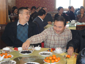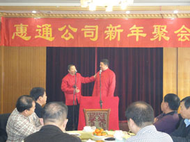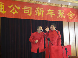 為增添新年聚會(huì)的熱烈氣氛,公司特意請(qǐng)來天津市曲藝團(tuán)的藝術(shù)家們登場(chǎng)獻(xiàn)藝。幽默的相聲、充滿天津地方韻味的天津時(shí)調(diào)和演員的反串表演贏得了大家的陣陣掌聲和開懷的笑聲。演出當(dāng)中公司船員也登臺(tái)獻(xiàn)藝,他的模仿秀也受到了大家的歡迎。
