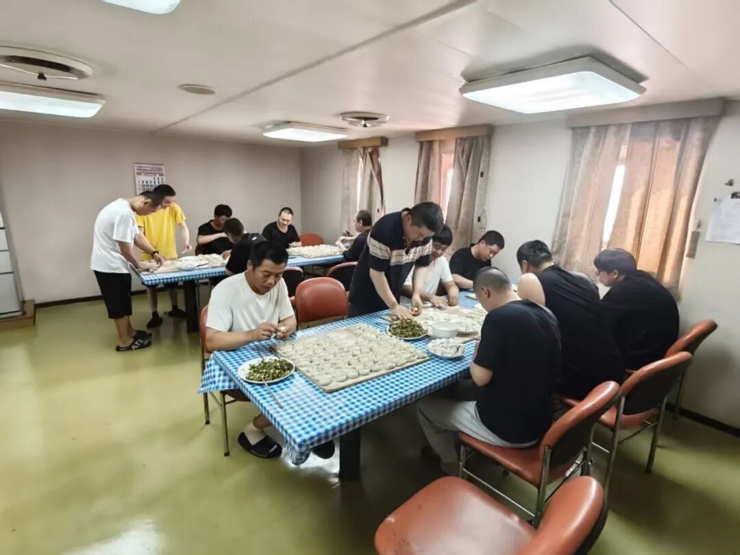 雖然不能回家,但船上的年味兒一點(diǎn)也不淡。除了值班的同事,大家一起動(dòng)手,把狹小的船艙布置得溫馨熱鬧。我笨拙地跟著老船員貼春聯(lián),把“?!弊仲N倒了好幾次,引來一陣善意的笑聲;大廚用有限的食材,做出了帶著家鄉(xiāng)味道的紅燒肉和餃子,熱氣騰騰的飯菜端上桌時(shí),來自五湖四海的船員圍坐在一起,沒有觥籌交錯(cuò)的應(yīng)酬,只有真誠樸實(shí)的問候。有人給我夾了一個(gè)餃子,笑著說:“嘗嘗,這是我們船上的‘團(tuán)圓味’?!蹦且豢?,我鼻子一酸,原來沒有親人在身旁,也能感受到家的溫暖。