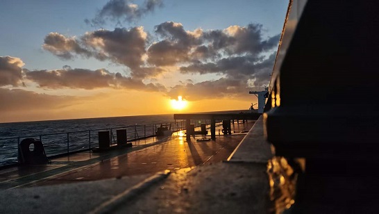 穿運河畢,傳奇輪續(xù)向美港進發(fā)。遠洋日夜,或星河萬頃覆穹頂,或浪濤千疊拍船舷,更有同船弟兄風雨同舟、冷暖相依。余于值守中熟稔航路,于實操中精進所學,于跨洋征程中體悟航海人堅守之魂、遼闊之懷。自近海至深藍,由生疏至熟稔,終懂“乘風破浪”四字背后,是千錘百煉之專業(yè),是寸步不怠之擔當。