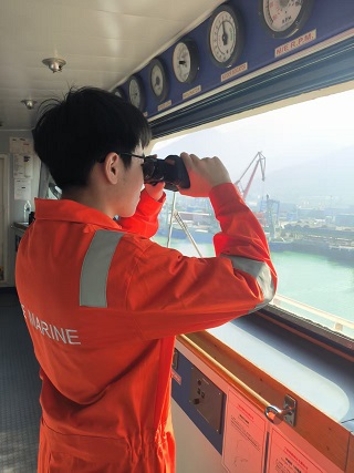 在大洋上甲板日常維護(hù)保養(yǎng)期間,聽從水頭的工作安排,跟著前輩們的身后從最基礎(chǔ)的事情做起,幫忙拿個(gè)扳手遞個(gè)東西,到如今上船3個(gè)多月逐漸熟悉了敲銹、刷漆、設(shè)備潤滑、索具整理等日常維護(hù)工作,我逐漸熟悉了甲板設(shè)備的名稱、用途及基本保養(yǎng)流程,認(rèn)識(shí)到船舶保養(yǎng)對(duì)保障航行安全的重要意義。在航行值班時(shí),我跟隨駕駛員學(xué)習(xí)瞭望、判斷船舶動(dòng)態(tài)、觀測氣象和海況等值班基礎(chǔ)要求和注意事項(xiàng)。駕駛員與VTS不緊不慢地溝通也讓我意識(shí)到了英語的重要性。